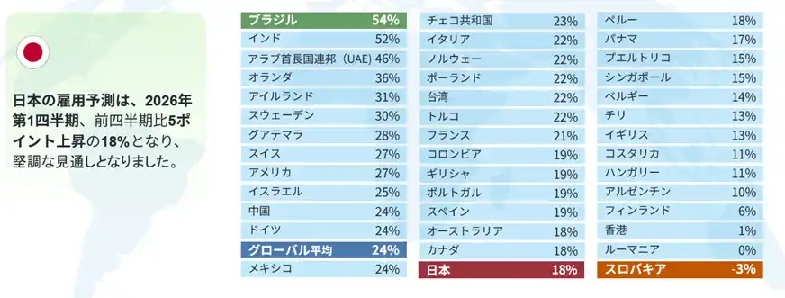マンパワーグループ、2026年第1四半期(1-3月期)雇用予測調査結果を発表