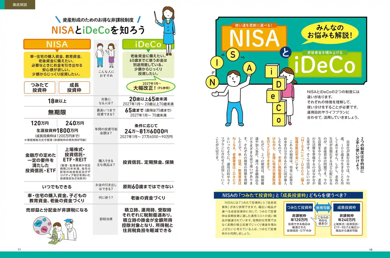 | 本誌では、制度の基本はもちろん、口座開設から具体的なおすすめ商品まで、図解や画面写真を用いてフルカラーでわかりやすく解説しています。これを読めば初心者でも迷わず新NISA&iDeCoを始められます。 | ||||||||||||||||||