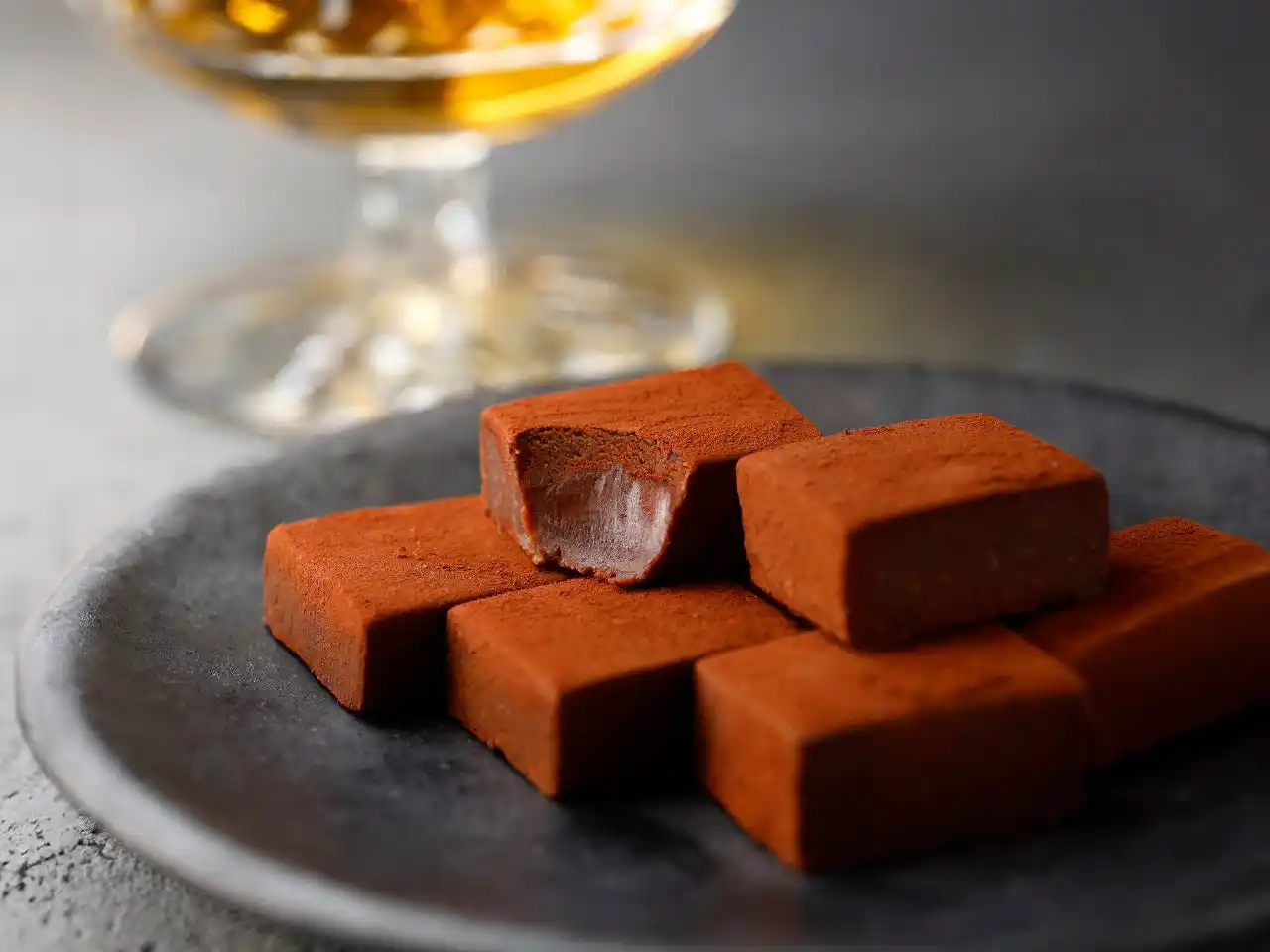 酒ガナッシュは、生チョコレートのようななめらかな口どけが特長です。一般的な生チョコレートが生クリームでみずみずしさを出すのに対し、本商品ではあえて生クリームを使用せず、ウイスキーの配合量をできる限り高めています。この革新的な配合により、アルコール分は3.6%となっています。芳醇なウイスキーの香りが口いっぱいに広がり、その余韻に深く酔いしれる、大人のための特別な一粒です。 |