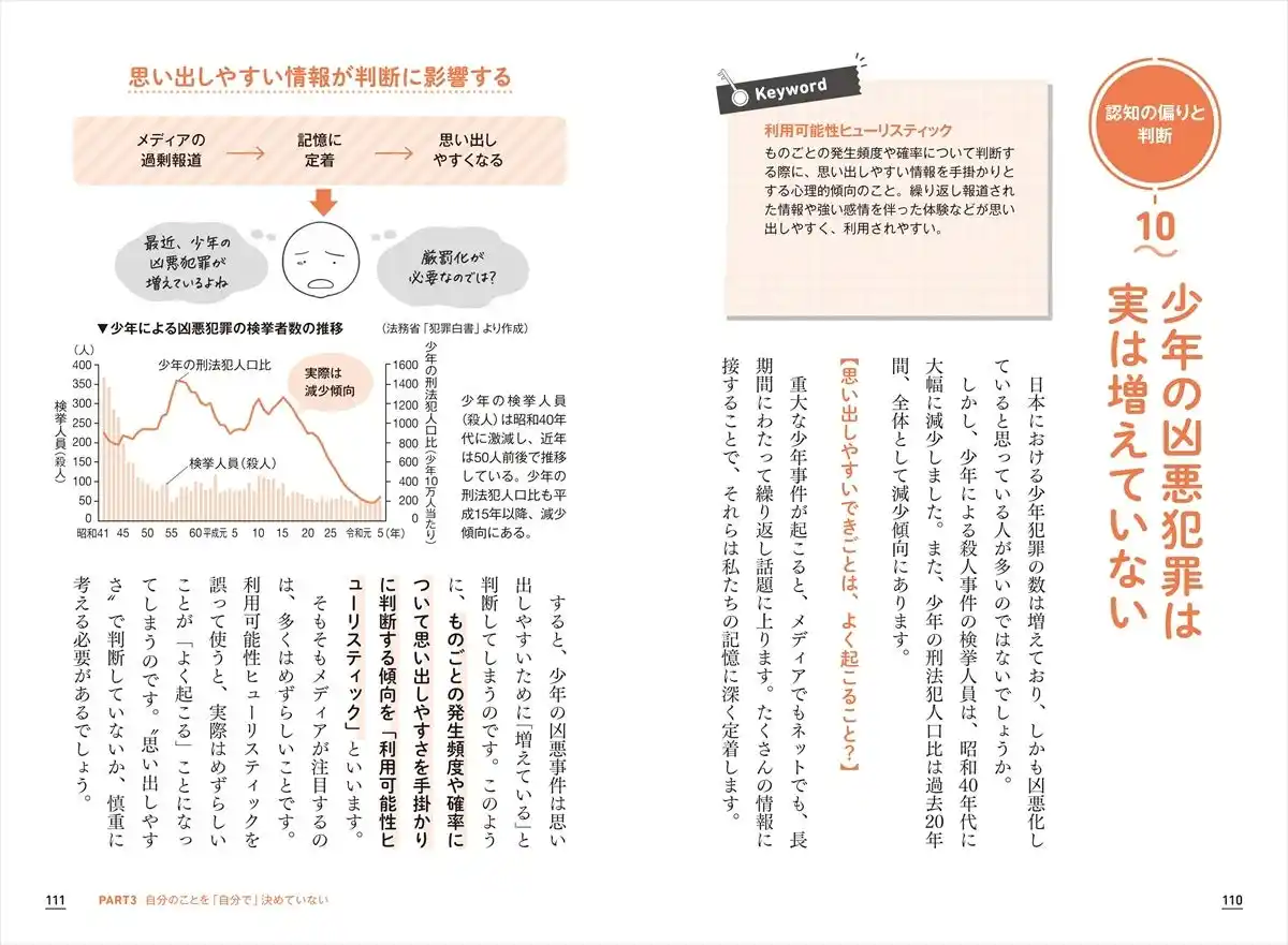 <トピックス例> ・みんなが残業していると一人だけ帰りづらい ・仲の良い集団ほど違う意見を言いづらい ・「全然勉強してないよ」で自尊心を守る ・あやしい情報も時間がたつと信じてしまう ・他者を下げて上に立つマウンティグの心理 ・被害者へのバッシングはなぜ起こる? ・闇バイトに加担するのは特別な人じゃない ・偶然よりも世界を動かす陰謀論を信じてしまう |
