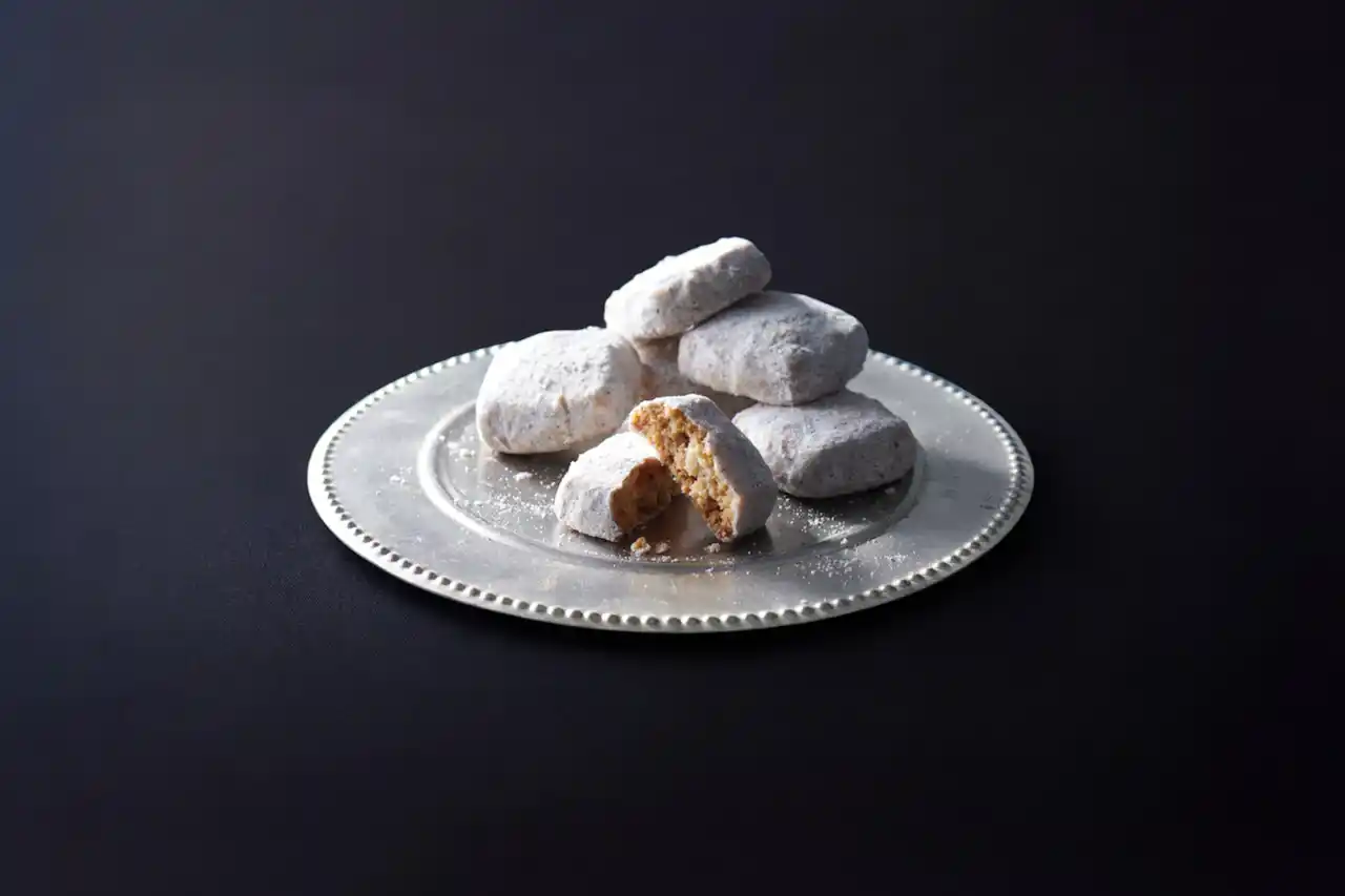 生地には、上質なバニラパウダーをたっぷりと練りこみ、表面を包むパウダーシュガーにも、ほのかにバニラの余韻を忍ばせました。 |