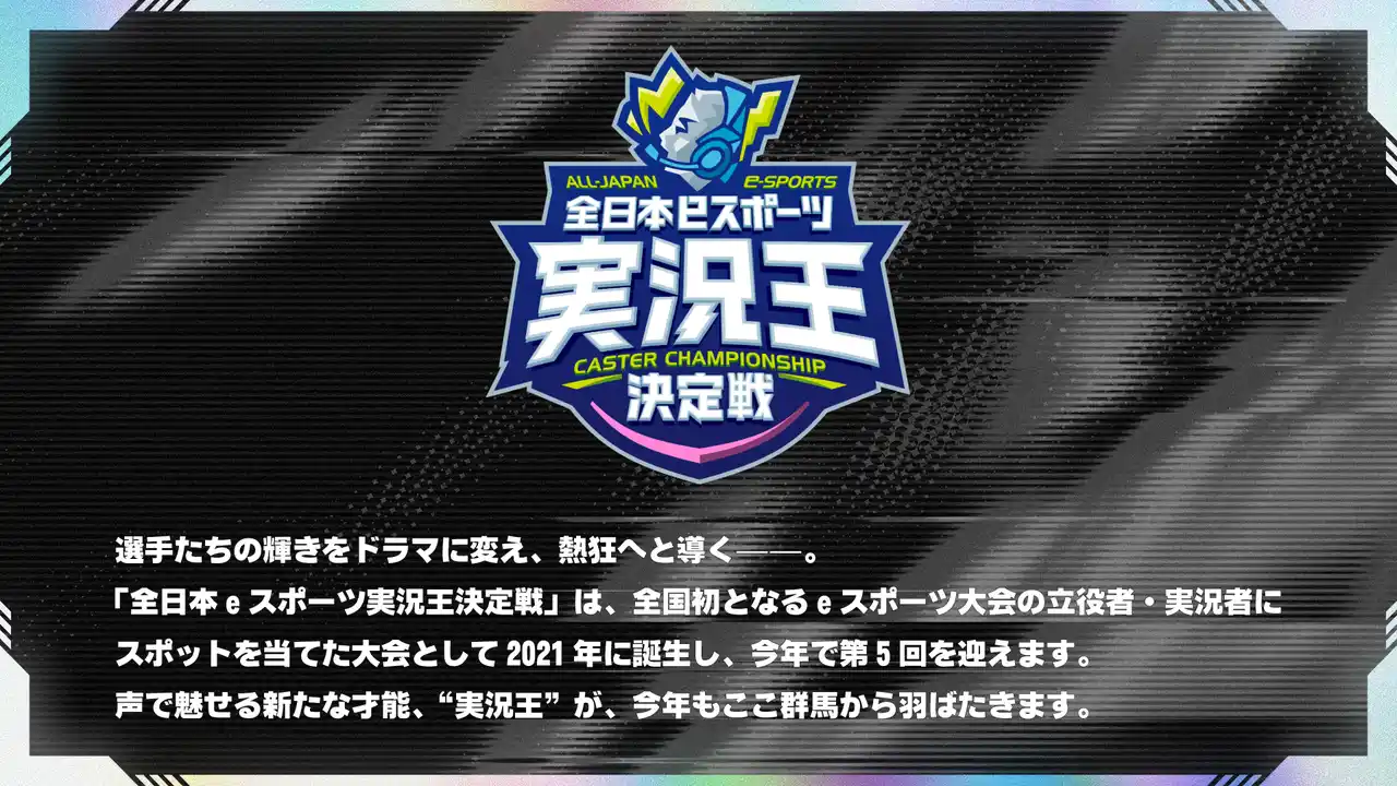 12月20日(土)に開催される「全日本eスポーツ実況王決定戦」は選手のプレーを“ドラマ”に変え、観客を熱狂へ導く実況者にスポットを当てた、日本初の全国大会です。 2021年に誕生し、今年で第5回を迎える本大会はタイトルを毎年変えながら、群馬から数多くの実況者が羽ばたいてきました。 今年の実況タイトルは「ポケモンユナイト」。 世代や性別を問わず、多彩なスタイルの“実況者”の誕生が期待されています。 |