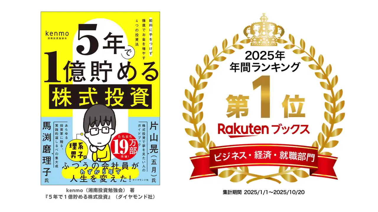 拙書『5年で1億貯める株式投資』が「楽天ブックス2025年 年間ランキング」のビジネス・経済・就職部門で1位に選ばれたとのことで、本当にありがとうございます。ここまで多くの方に手に取 |