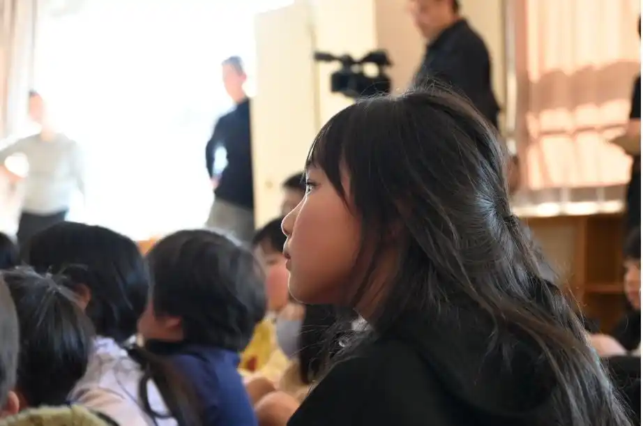 緒方湊さんの話を真剣に聞く生徒 |