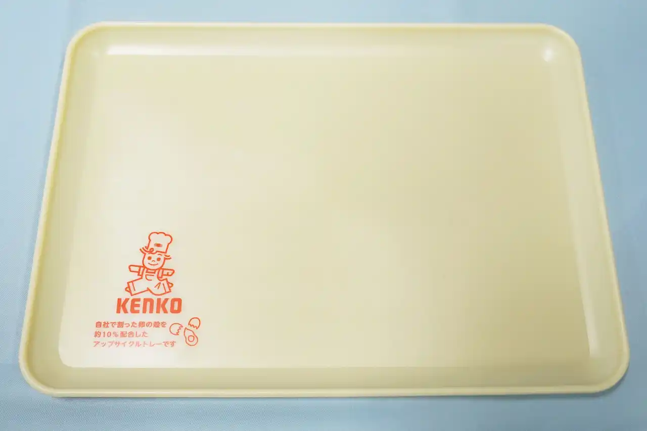 | 廃棄物となる卵殻は活用するうえで、卵殻に含まれる卵殻膜の処理や卵殻特有の匂いの課題がありました。これらの課題は加工業者の特殊技術と高温処理により解決できました。さらに卵殻をアルカリ化させることで、抗菌作用の付与にも繋がりました。トレーとしての活用のしやすさにこだわり、サイズ、重さに配慮した設計です。当社のロゴもワンポイントに加え、オリジナリティ溢れるトレーが完成しました。 | |||