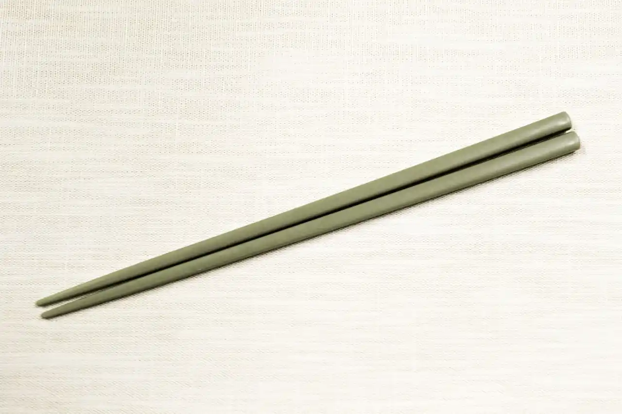 | 卵殻由来の抗菌効果により衛生的であることから、食に関連したツールでの活用を検討しました。箸にするアイデアが生まれ、試作を進めました。約1年の歳月をかけて、自社工場で発生する卵殻を炭化、樹脂と混合してペレット状にしたものを箸に成形しました。今回、各工程を異なる業者に依頼した | |||