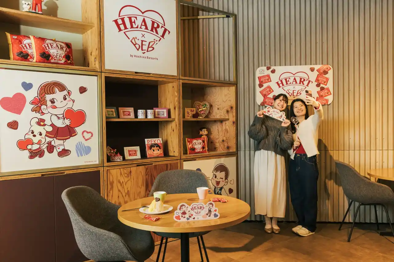 株式会社不二家(本社:東京都文京区、社長:河村 宣行)と星野リゾート(長野県軽井沢町、代表:星野 佳路)は、「ハートチョコレート」と「BEB(ベブ) by 星野リゾート」によるコラボキャンペーンを2026年1月15日(木)より実施いたします。「BEB by 星野リゾート」は「みんなでルーズに過ごすホテル」がコンセプトの、若い世代のためのホテルブランドです。本キャンペーンのメインである特別な宿泊プラン「スウィートハートルームステイ」の今年のテーマは「ハートを贈ろう」。不二家のロングセラー「ハートチョコレート」とのコラボルーム、2色の盛れるモンブラン、フォトブースなど、バレンタインデー&ホワイトデーにぴったりな心ときめくコンテンツを用意しています。 |