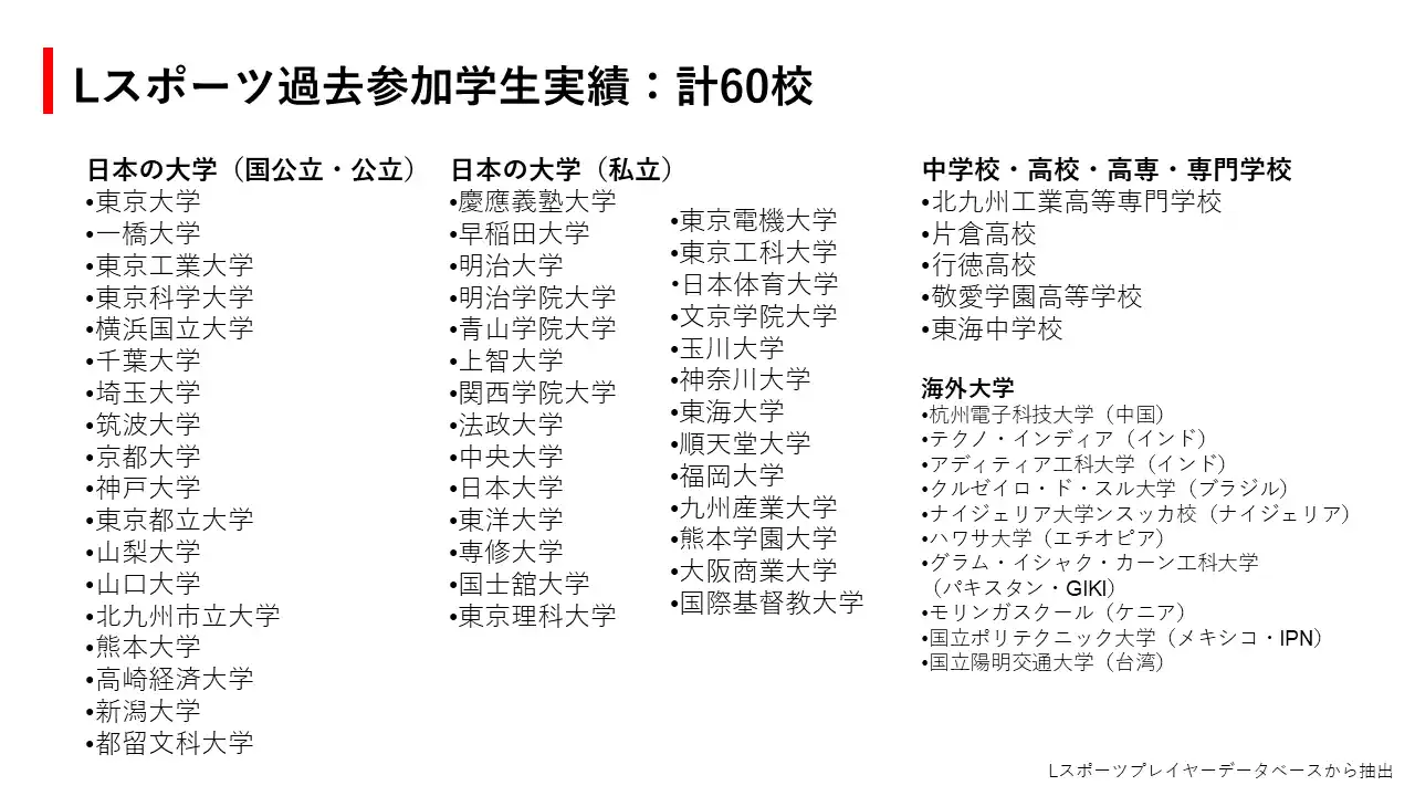 ■Lスポーツ過去参加学生実績:計60校 |