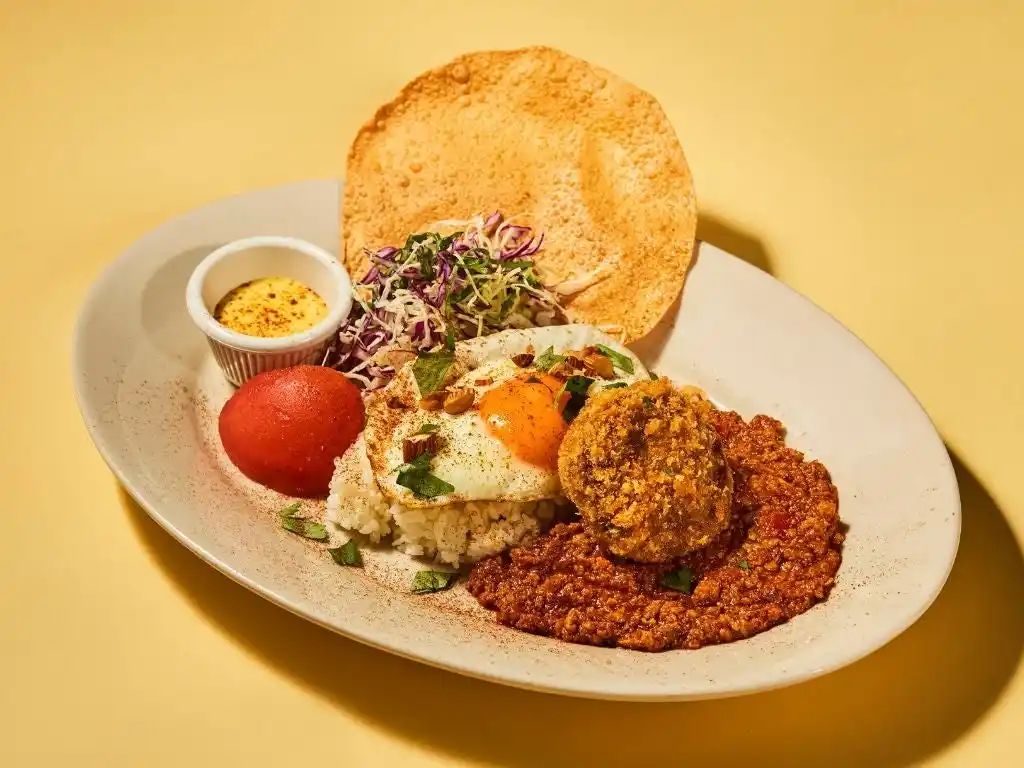 この度、「WIRED CAFE」ではグランドメニューを全面リニューアルし、新定番「シブヤライス」の販売も開始いたしました。多様な文化が交差する渋谷で、1999年に1号店を開業した「WIRED CAFE」。創業の地の名前を冠したこのメニューは、日本のメンチカツ、インドのパパド、メキシコ生まれ沖縄育ちのタコライス、地中海のアーモンドなど多様な食材を一つにまとめ上げた新定番メニューです。同じく創業のストリート名を付けたオリジナルソース「シブヤキャットストリートソース」がかけ放題でお楽しみいただけます。 |