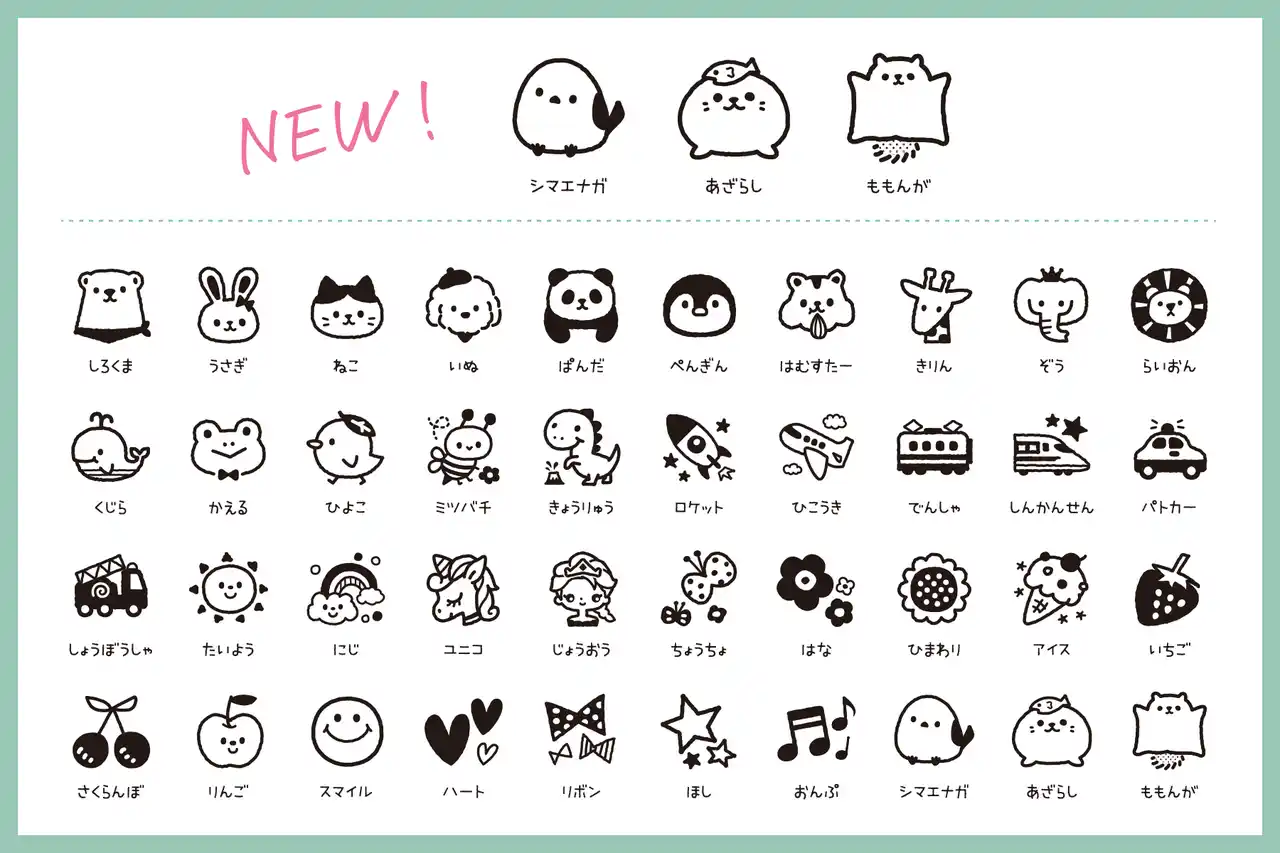 SNSでも人気の“シマエナガ・あざらし・ももんが”の3種類が新登場。お名前の横にちょこんと押すだけで、文字の読めないお子さまでも「自分のもの」がひと目でわかる可愛いワンポイントとなります。 |