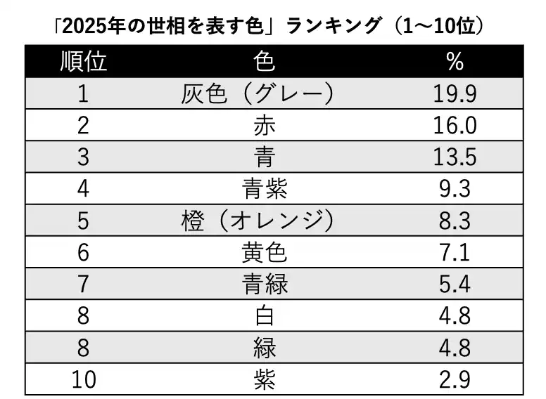 | ■「 2025年の世相を表す色」は灰色(グレー)が19.9%で最多。赤(16.0%)、青(13.5%)が続く | ||||||