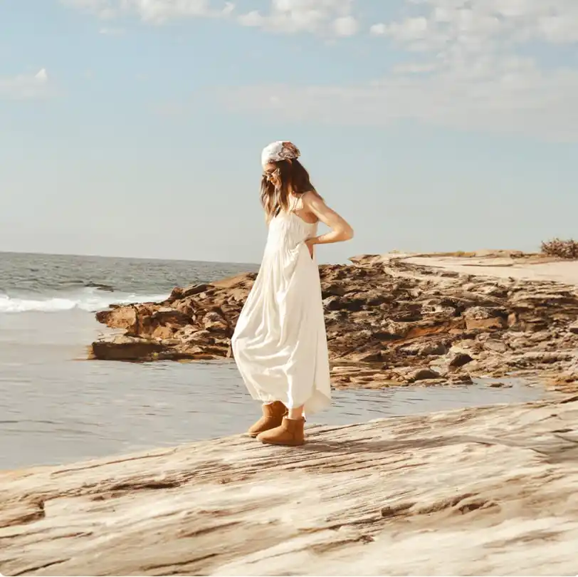 いずれのモデルも共通しているのは、オーストラリア産メリノシープスキンの柔らかさと快適さ、そしてタイムレスなデザイン。クラシックな定番はブランドの原点を示し、スエードやプラットフォームは現代的な感性を映し出し、光沢感や都会的な仕上げは海辺のリラックスと都市の洗練をつなぐ架け橋となっています。 |