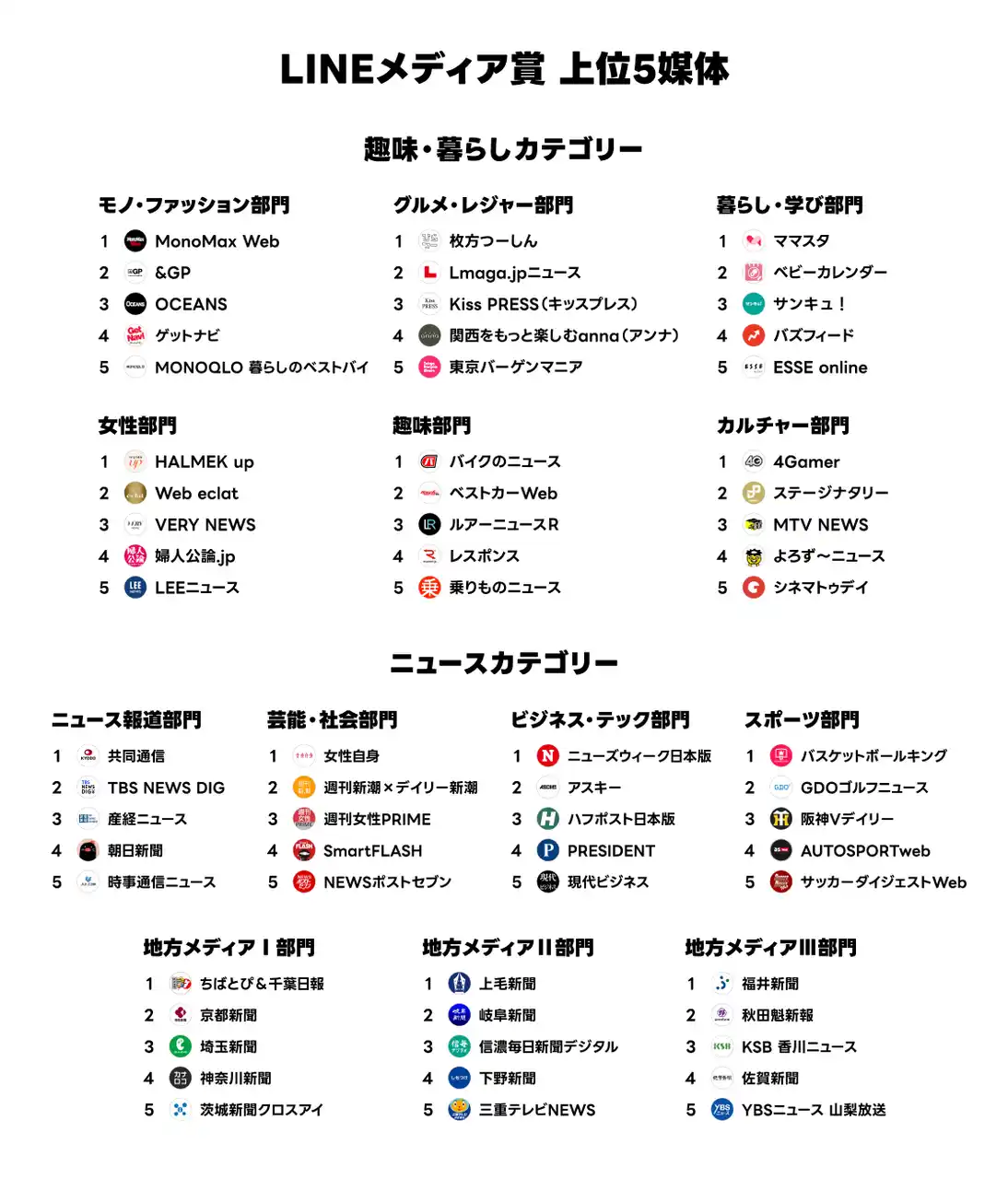 ▼「LINE NEWS AWARDS」 メディア賞のこれまでの受賞メディア一覧:https://lineaccountmedia.com/n/n4a14cc0c2c25