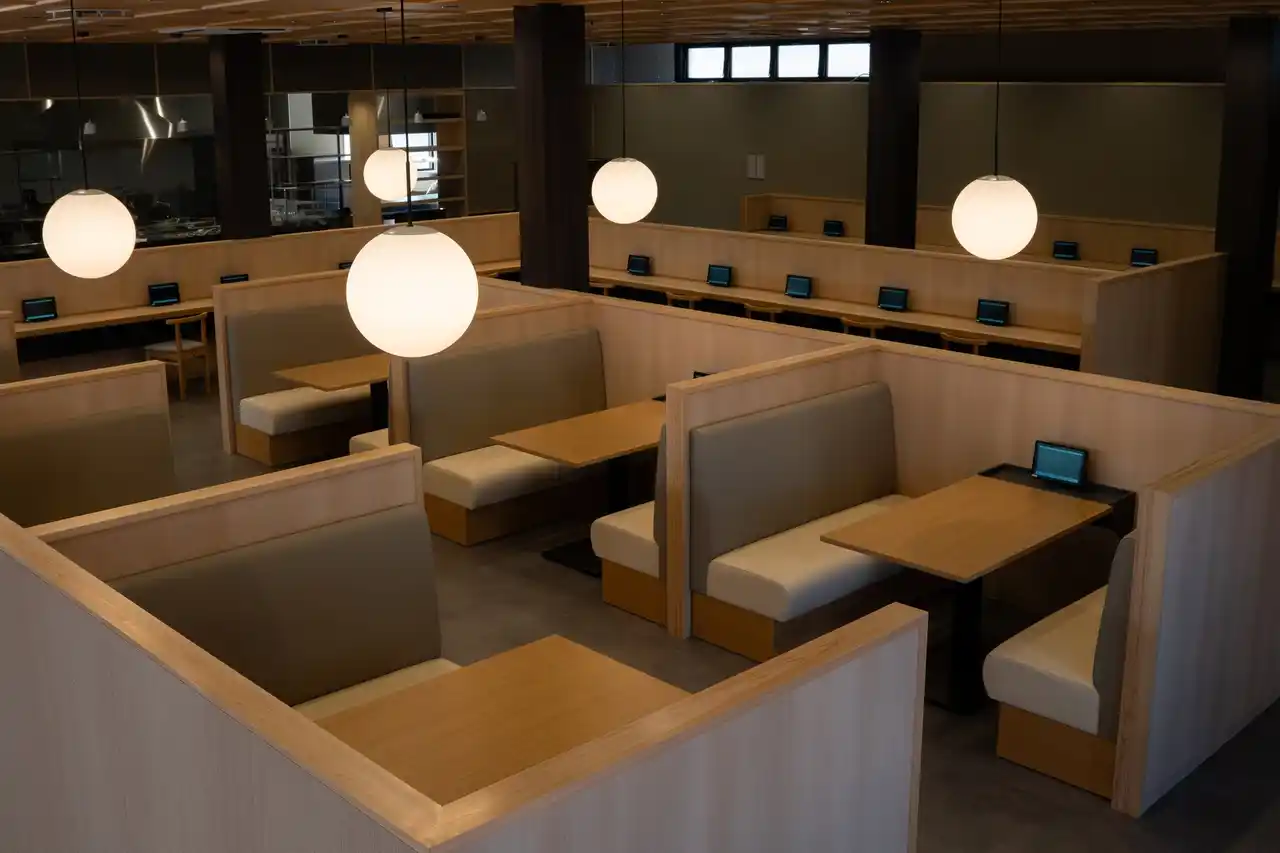 ・多彩な席とタッチパネル導入でより快適に |
