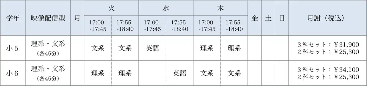 小学5年生 3科セット:31,900円 2科セット:25,300円 |
