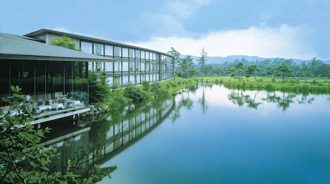 2025年7月リニューアルオープンした池畔越しにゴルフコースと浅間山を望むプリンスグランドリゾート軽井沢の旗艦ホテル。レストランやすべての客室からは水辺を眺めることができ、客室とルーバーを隔てるドアは自然の風を取り入れる仕組みを生かすなど、風景と建築を通し自然と調和しながら静寂を楽しむホテルとして国内外のゲストに上質な滞在を提供しています。 |
