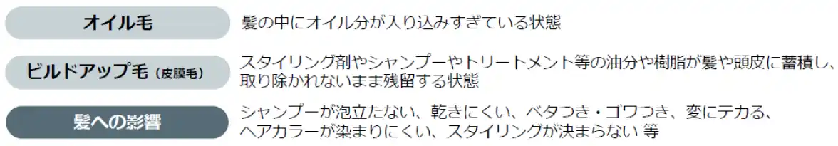 オイル毛・ビルドアップ毛のデメリットに着目したトリプルレイヤー処方 |