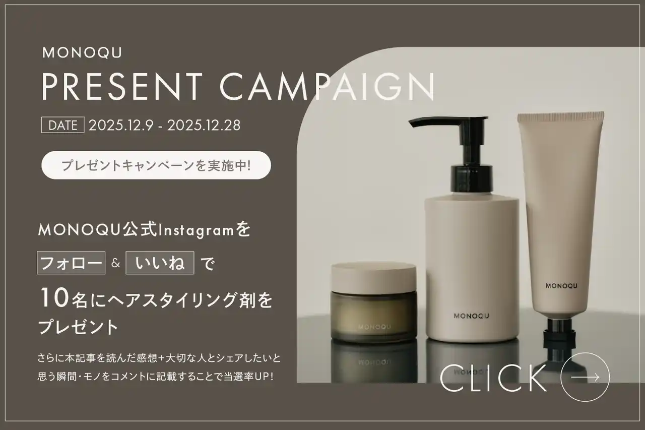 インタビュー 「わたしをカタチ創るもの。」第3弾の公開を記念して、MONOQU公式Instagram (@monoqu_official)にてプレゼントキャンペーンを実施します。 |