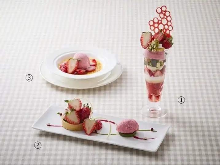 | 1F 「シンフォニー」ならびに「フォンテーヌ」では、イチゴの酸味と抹茶の旨みが重なり奥深い味わいをお楽しみいただける「いちごと抹茶のデザートフェア」を開催いたします。 | |||||||||||||||