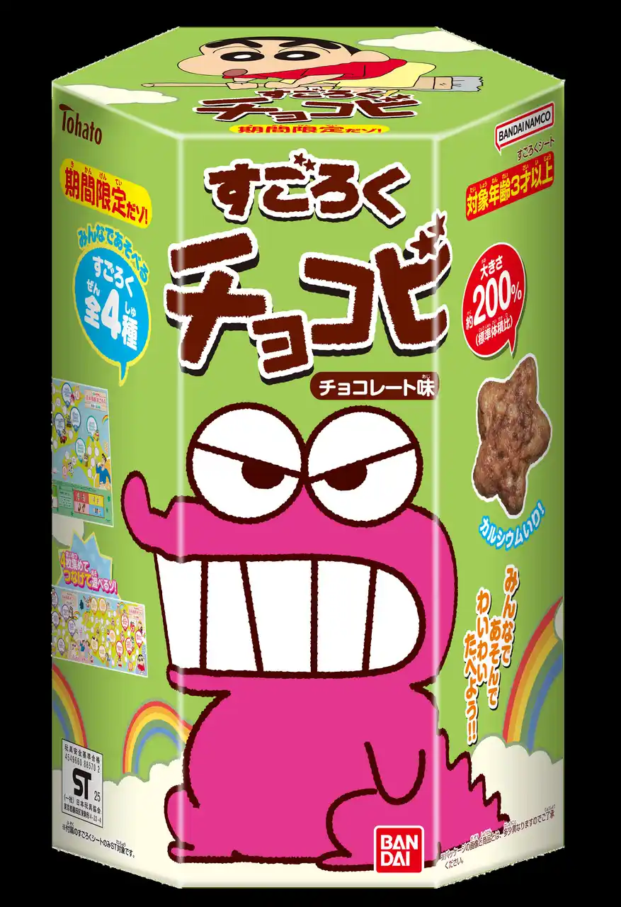 イベントでは、アニメの作中に登場するお菓子がモチーフとなった、人気菓子「すごろくチョコビ」(バンダイ製品)の季節限定商品のおまけとしてついてくる「日本横断すごろく(全4種)」を、イベント限定のビッグサイズバージョンで遊んでいただけます。 |