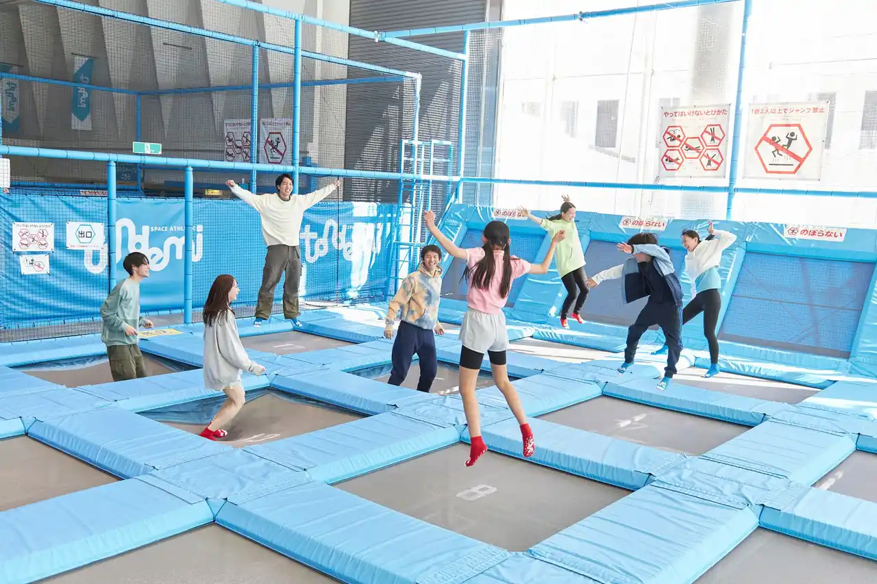 | 『トンデミ』は「トランポリン」「クライミングウォール」「ロープウォーク」など人気のアクティビティを取りそろえた本格的な屋内アスレチック施設です。2017年4月に1号店のイオンモール幕張新都心店を開業以来、YouTubeやテレビ番組、SNSを中心にメディアでも話題で、天候に左右されず予定を決められる点も魅力の一つです。 | |||||||||