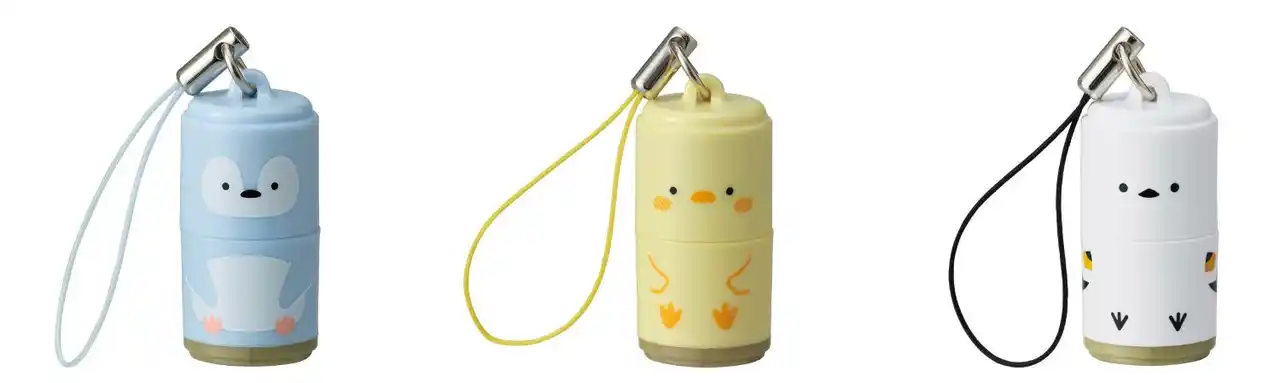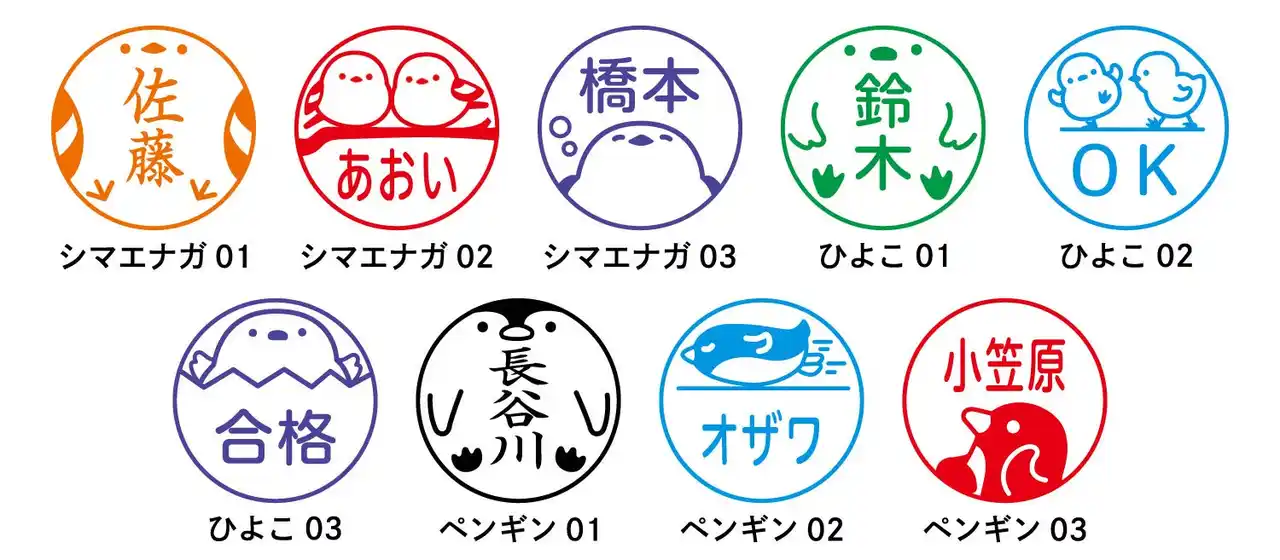 「プチネーム Animal Egg」は、アイデアクリエーター いしかわかずや氏とのコラボ企画で誕生した、たまご型ケースに入り、鳥をモチーフにしたデザインのミニサイズのネーム印です。ストラップ付きで持ち運びにも便利です。ラインナップは、ペンギン、ひよこ、シマエナガの3種類。印面は、9種類のイラスト入り印面から選ぶことができ、氏名のみでもお作りいただけます。インキ内蔵式なのでどこでも手軽に押すことができます。 |
