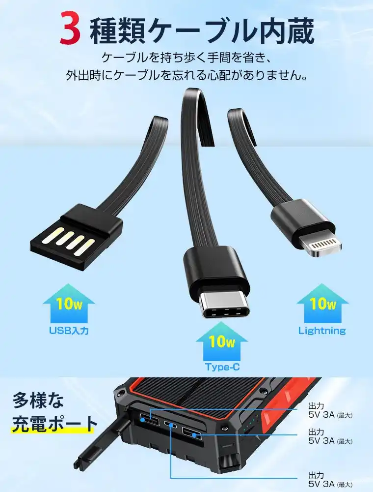 | コード忘れやアダプター不足の心配がなく、旅行・出張・非常用持ち出し袋にも最適。 | ||||||||||||||||||