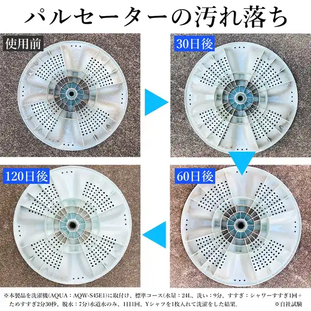 本製品を取り付けることで、「洗濯物の汚れ落ち」「洗濯槽の汚れ落ち」「排水ホースの汚れ落ち」にお役立ていただけます。まさに、一石三鳥です。 |