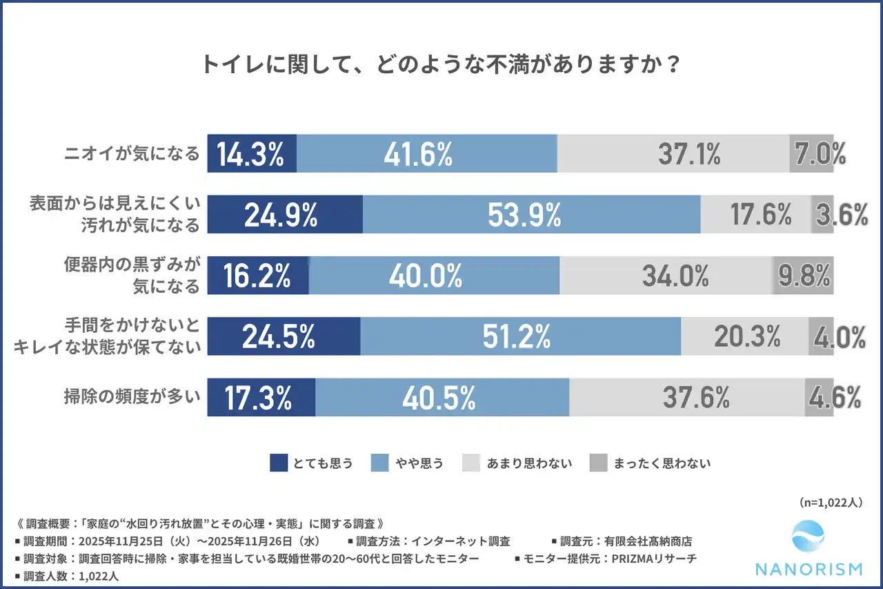 加えて、頑固な汚れや触りたくない箇所の存在が心理的な抵抗を生み、大変さを感じる要因になっていると考えられます。 |