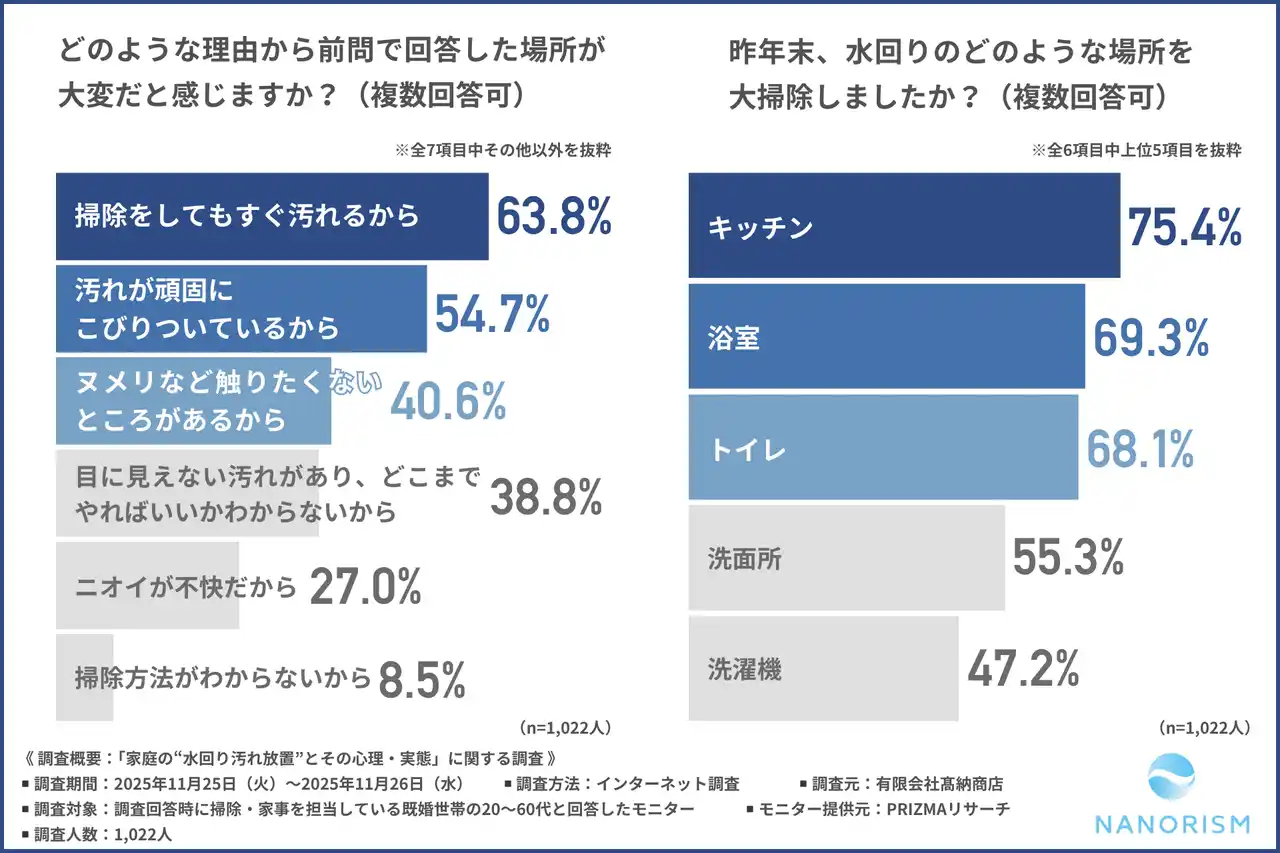 有限会社高納商店(所在地:岐阜県岐阜市、代表取締役:高納 資郎)は、掃除・家事を担当している既婚世帯の20~60代の方を対象に、「家庭の“水回り汚れ放置”とその心理・実態」に関する調査を行いました。