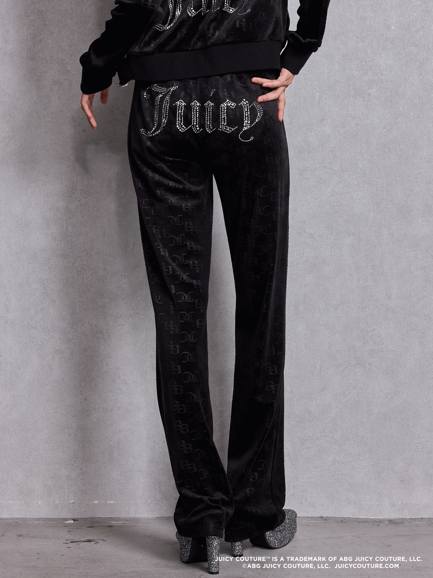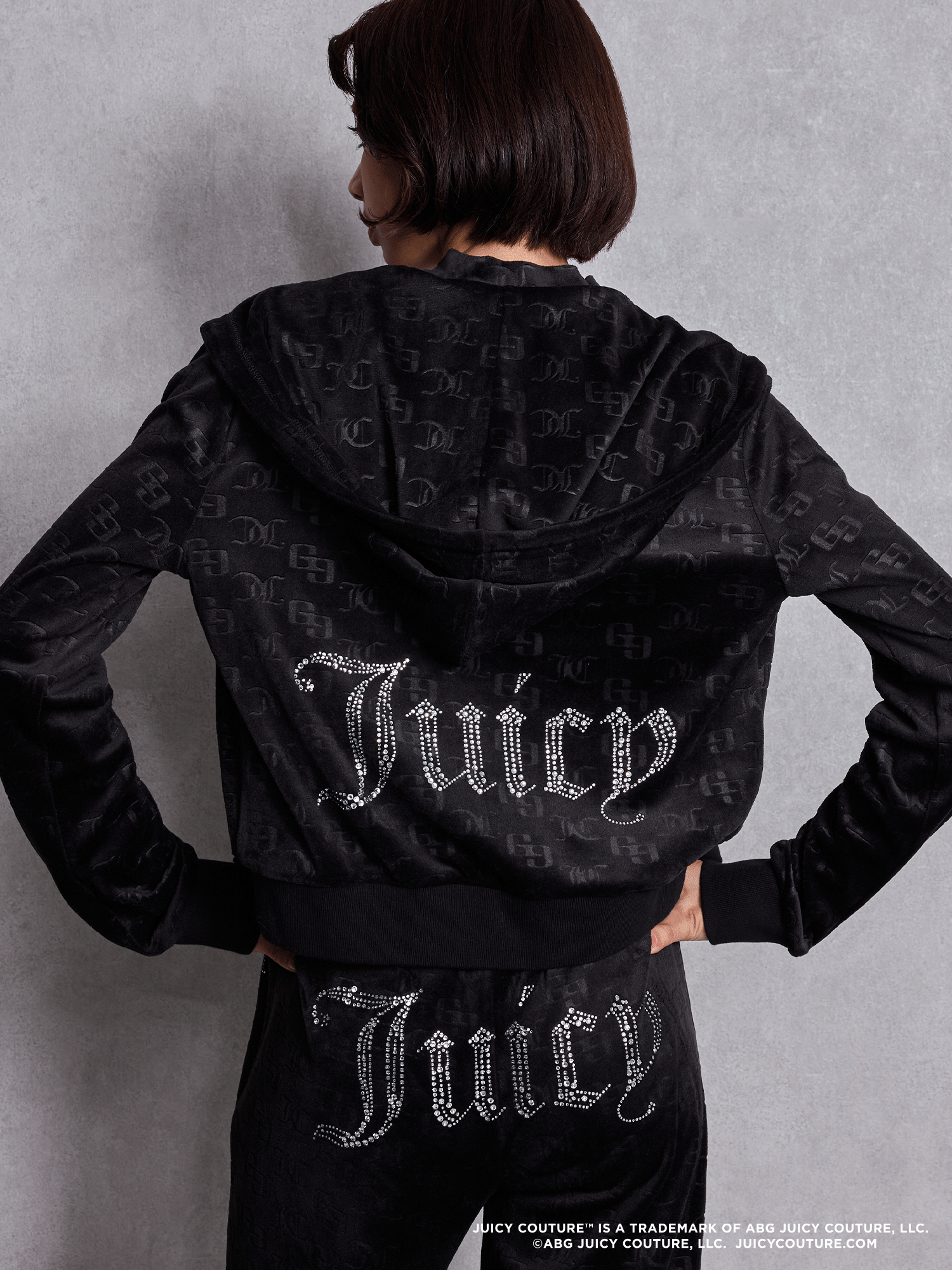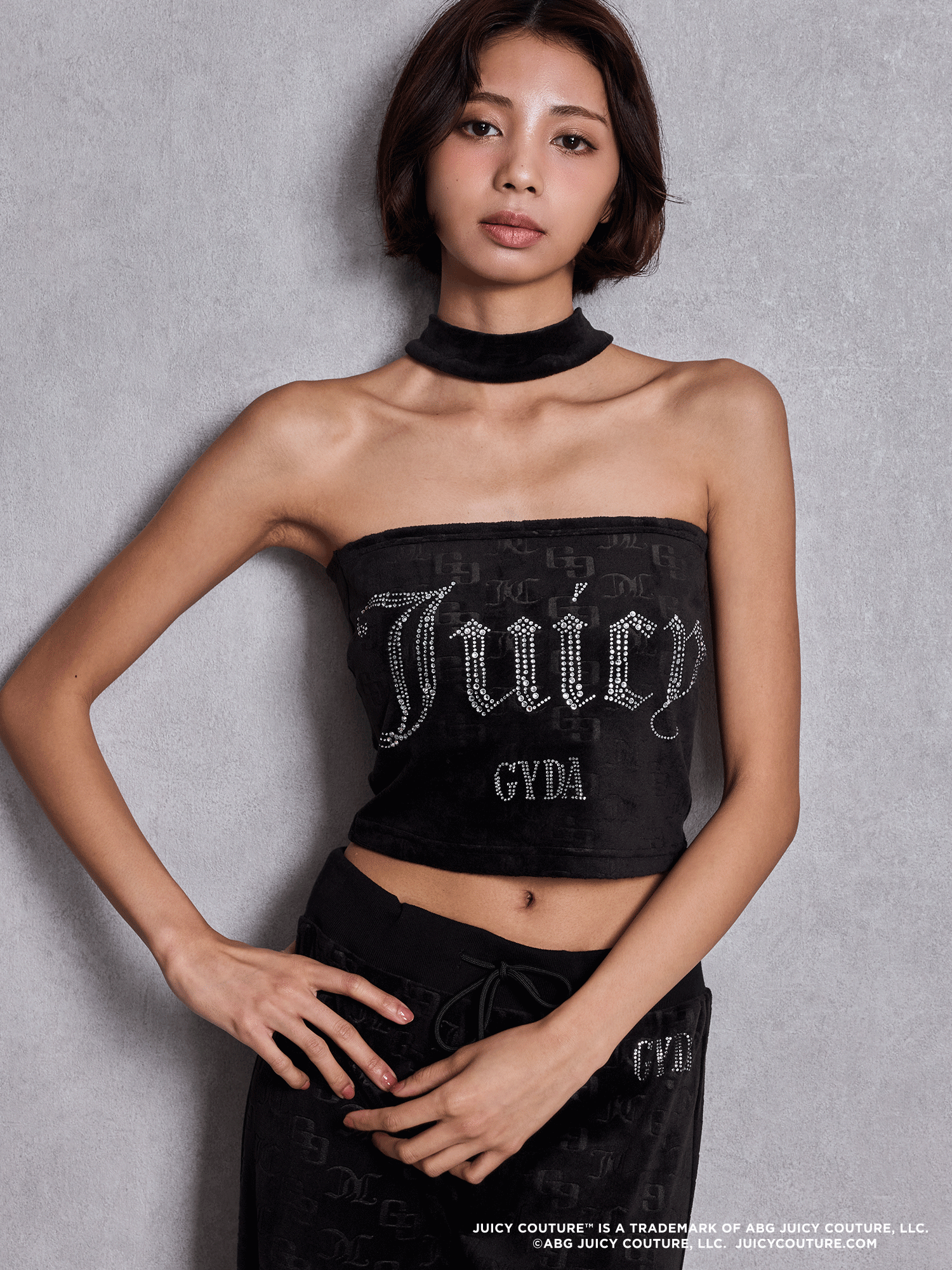 | ラインストーンで施されたJuicyロゴが存在感のあるフーディーとトラックパンツに加え、 チョーカーデザインビスチェの全3型を展開します。 | ||||||||||