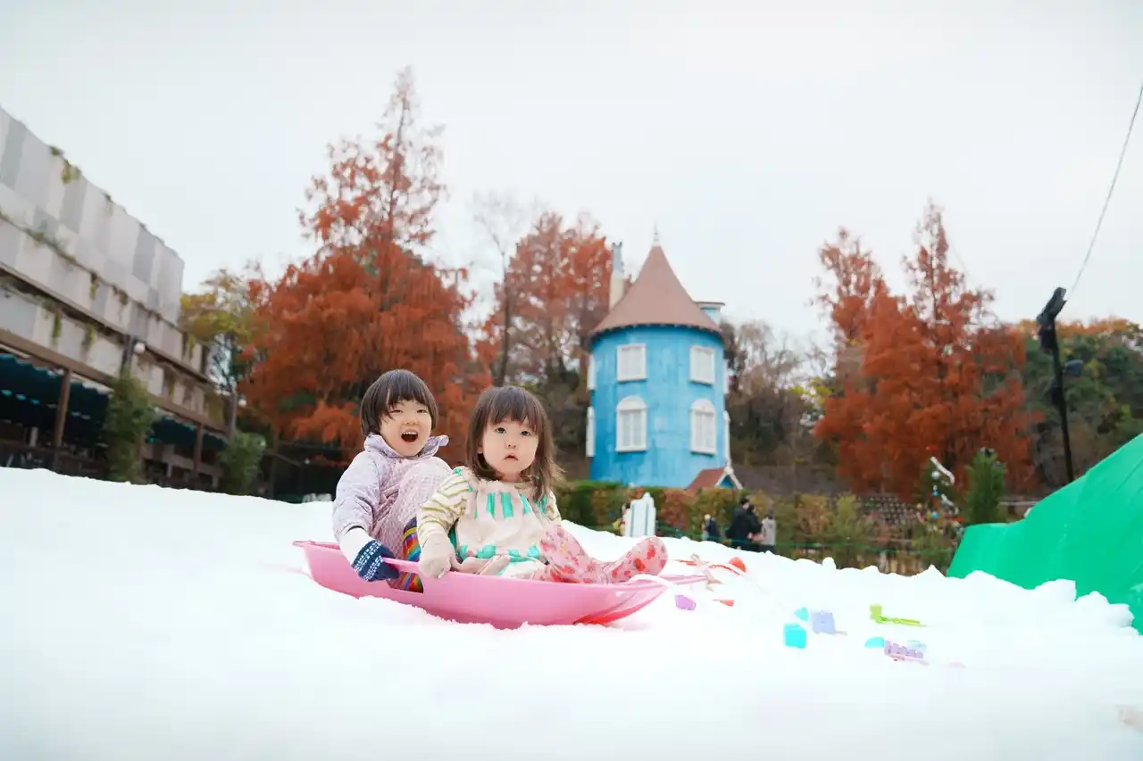 WINTER WONDERLAND in MOOMINVALLEY PARK 期間中も「ゆきあそび広場」・「そりあそび広場」ともにお楽しみいただけます! 人工造雪機を使用した雪の世界で思う存分冬のアクティビティを体験しよう! |
