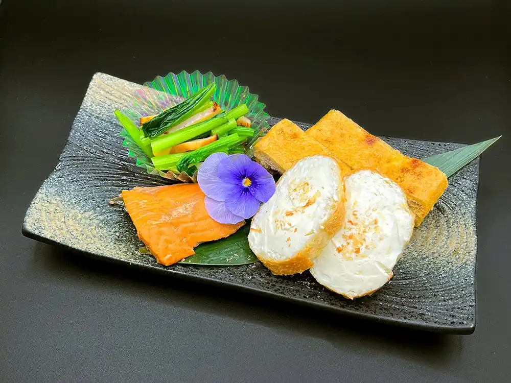 | 栃尾揚げ、鮭の焼漬など、おつまみ四種を詰め合わせた「おつまみボックス」付き。 | |||