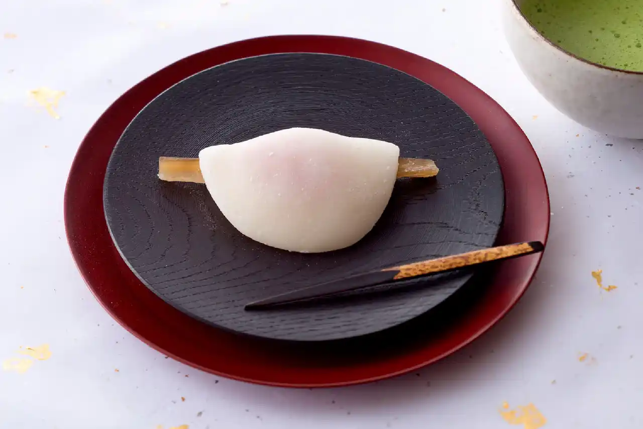 柔らかい求肥(りゅうひ)にやさしい甘さの白味噌餡と紅あん、蜜漬けの牛蒡を入れて包んだ花びら餅は、茶道の初釜でいただく生菓子としても親しまれております。 |