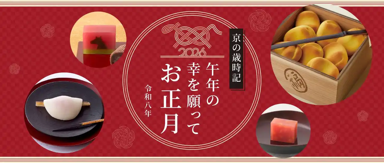 和菓子製造販売の株式会社 鶴屋吉信(つるやよしのぶ)(本社:京都市上京区、代表取締役社長:稲田慎一郎)は、来る令和8年(2026年)のお正月を祝う和菓子の数々を、12月初旬より発売開始いたしました。(一部中旬発売の商品あり) |