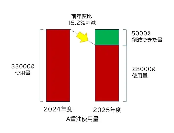 その結果、燃料使用量は 前年度比で15.2%削減 を達成。さらに CO2排出量も約13.5トン削減 することができ、燃料コストだけでなく、社会貢献の面でも大きな成果につながりました。 |