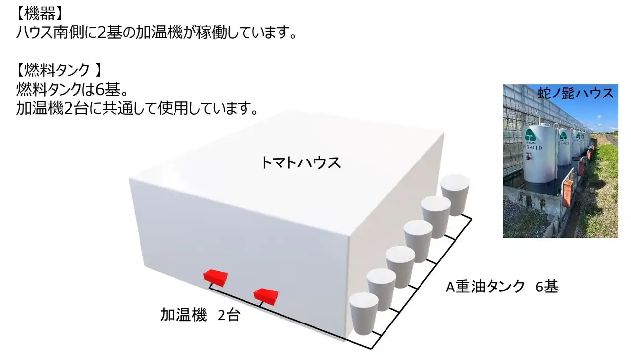 株式会社G-grow(代表 五藤 忠保 氏)は、令和4年度に開催した交流会での登壇をきっかけに、市内でミニトマトを生産している株式会社めぐりとまと(代表 伊藤 充治 氏)と協働し、燃料コストの削減及びCO2排出量の低減に向けた実証実験を行ってきました。 |