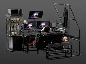 「自堕落ゲーマーを“衣食遊眠”の極致へ誘う」究極の冬ごもりレイアウト。その最大の魅力は、暖房なしで全身をぬくぬく温められる点です。ベッド用デスクや昇降式の背もたれを組み合わせることで、布団から一歩も出ずにPC作業、食事、そしてゲームまで全て完結します。大画面モニターやタブレットをアームで最適な位置に調整し、ヘッドセットや飲み物も手の届く場所に配備。寒い冬の朝、「布団から出たくない」という切実な願望を、そのまま最高のゲーム環境へと昇華させます。 |