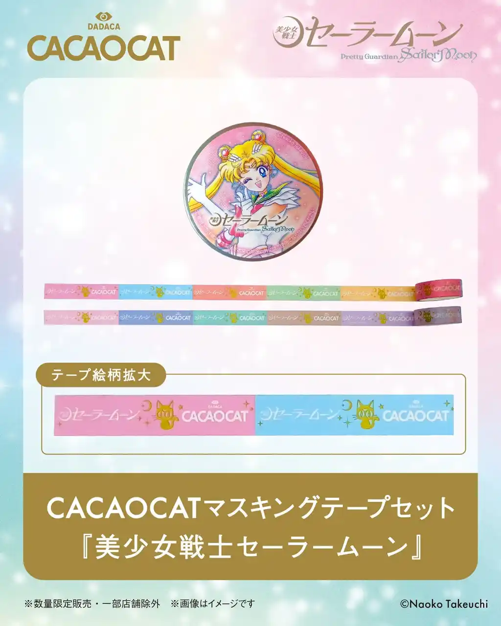 『美少女戦士セーラームーン』とCACAOCATのロゴが交互にデザインされた特別仕様。 |