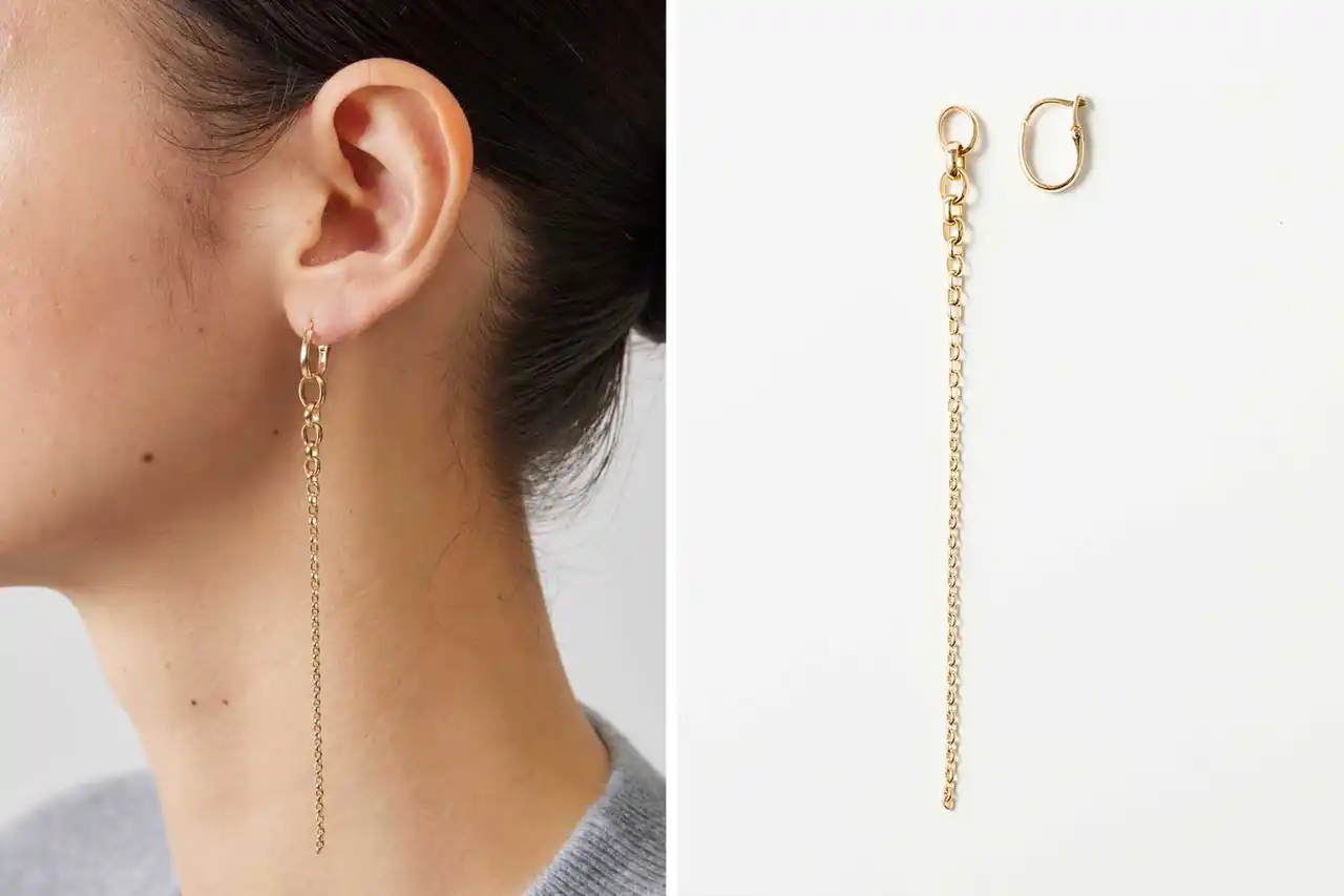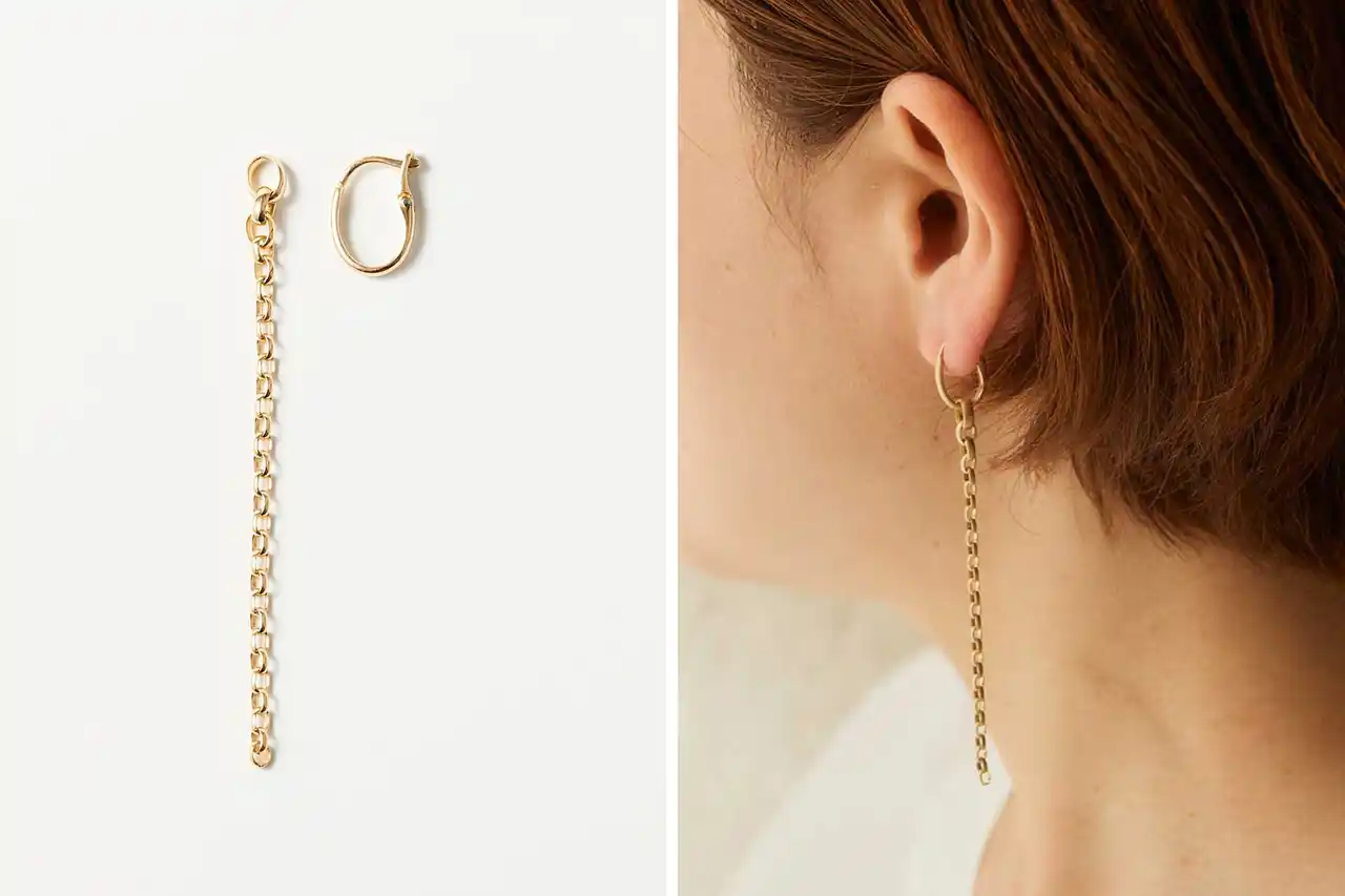 チェーンとフープピアス部分は着脱可能な構造となっており、日常使いからフォーマルまで幅広く活躍してくれます。 |