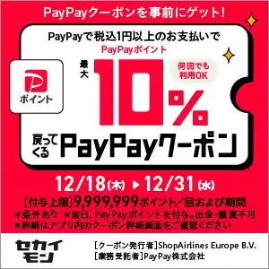 ※2025年12月18日(木)~2025年12月31日(水)は、PayPay支払いでセカイモンクーポンの利用はできません。 |