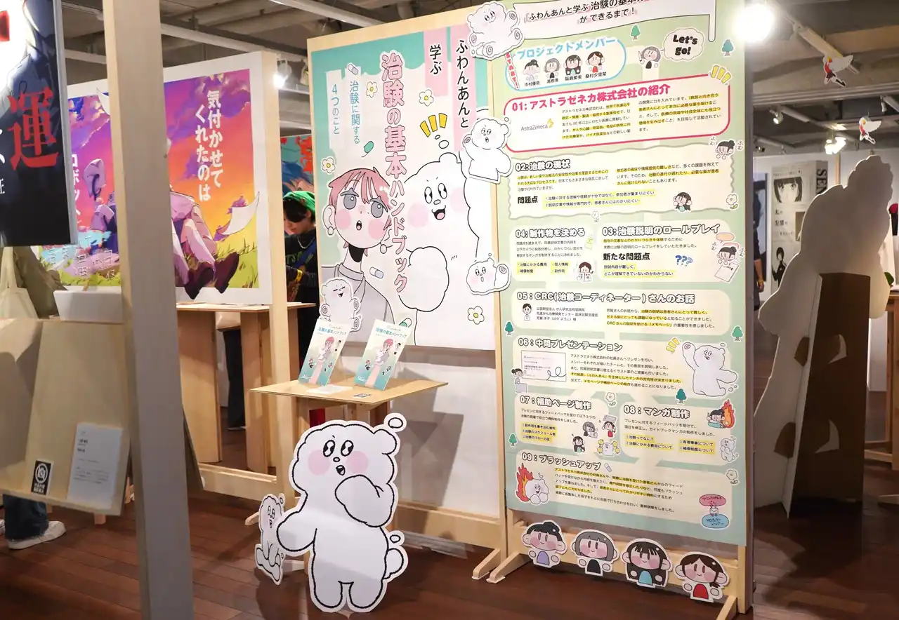 京都芸術大学(京都市左京区/学長:佐藤 卓)とアストラゼネカ株式会社(大阪市北区/代表取締役社長:堀井 貴史)は、共同で「治験」*¹ への正しい理解を促すアニメーション動画と、同意説明文書の補助資料となることを想定したマンガを制作しました。本取り組みは、芸術と医療という異分野の協働によって、医療現場での説明支援や患者の心理的負担の軽減を目指す産学連携プロジェクトです。 |