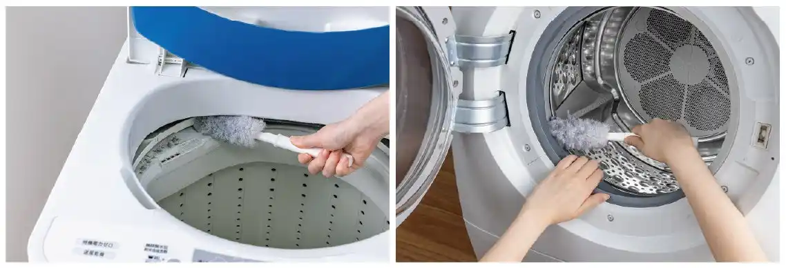 「びっくり洗濯機のホコリ取りま~す」は、縦型・ドラム式どちらの洗濯機にもご使用いただけます。洗濯槽のフチやフィルター穴、乾燥フィルターなど、普段は掃除しづらい部分の汚れもしっかり落とせます。これ1つで洗濯機を丸ごと掃除できるので日々の場所によって掃除アイテムを変えることなく、掃除の手間を軽減できます。 |