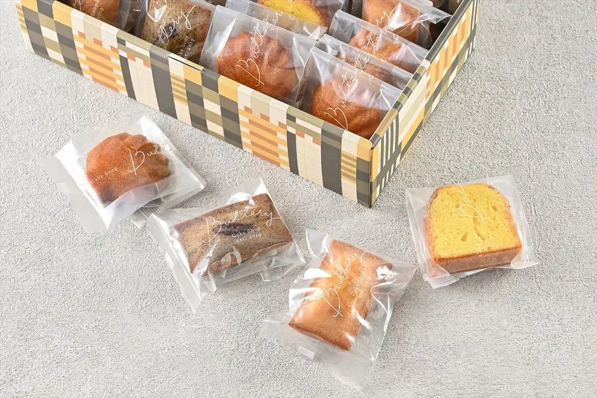 さらに、Buttery本店とオンラインショップでは、「北海道バターフィナンシェ」「季節のフィナンシェ(紅茶とブルーベリーのフィナンシェ)」「パウンドケーキ」「マドレーヌ」を詰め合わせた『焼き菓子16個入りギフト』など、ギフト商品を多数ご用意しています。カラフルなボックスに焼き菓子をたっぷりとアソートしたギフトボックスは、ご褒美スイーツとしてはもちろん、年末年始の手土産にもおすすめです。 |