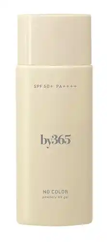 一般的に、サラサラの日焼け止めはなんとなく乾燥しやすいイメージがあったり、保湿感のある日焼け止めはなんとなく汗・水に弱い印象を持つ人が多いのですが、「by365 パウダリーUVジェル」は、「by365 パウダリーUVクリーム」と同じくUV耐水性は★★で、擦れにも強い処方。SPF50+ PA++++でありながら、石けんで簡単に落とせます。どこでも、365日いつもそばに、快適を提供するための無香料タイプの日焼け止めです。 |
