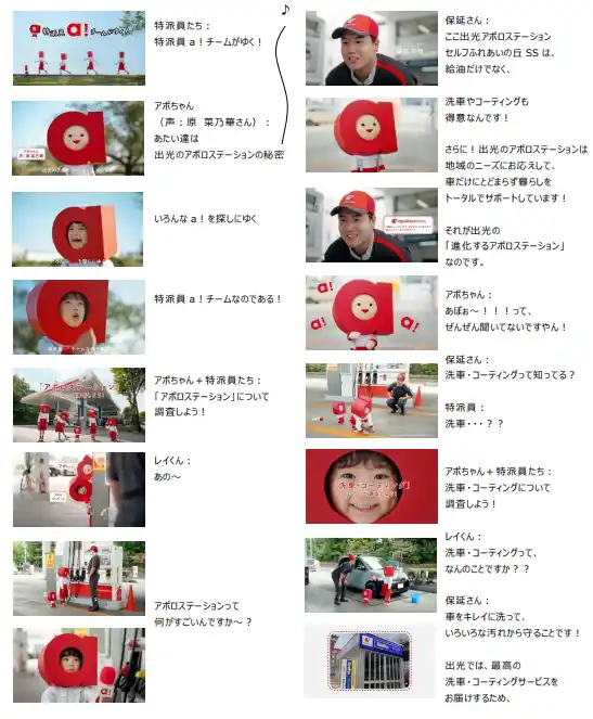 出光興産株式会社(本社:東京都千代田区、代表取締役社長:酒井則明、以下「当社」)は、地域のニーズに合わせて進化するサービスステーション「apollostation(アポロステーション)」のデジタルムービー「特派員a!チームがゆく!」の第1話「洗車でぴかぴか」篇を制作しました。公式YouTubeチャンネルなどでの公開およびWebCMの配信を、本日2025年12月9日(火)から開始します。 |