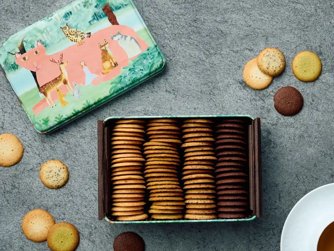 この缶のためだけに作られた、味も食感も異なる3種のオリジナルサブレをたっぷりと詰め合わせました。 |