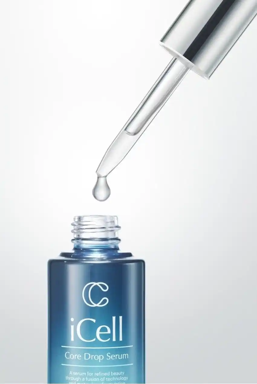 ・ 使用方法: 洗顔後、化粧水で肌を整えた後、iCell コアドロップセラムの スポイトを手に取り顔全体になじませてください。 |