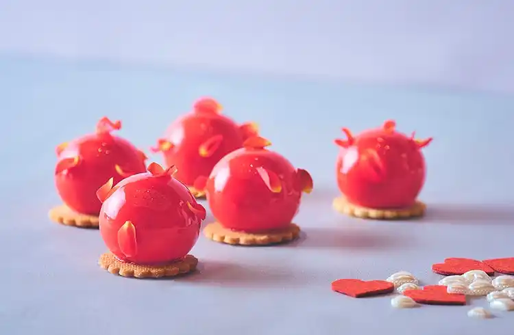 ストロベリームースに繊細で甘酸っぱいミラベルゼリーを合わせました。なめらかな食感が織りなす上品な味わいをお楽しみください。 |