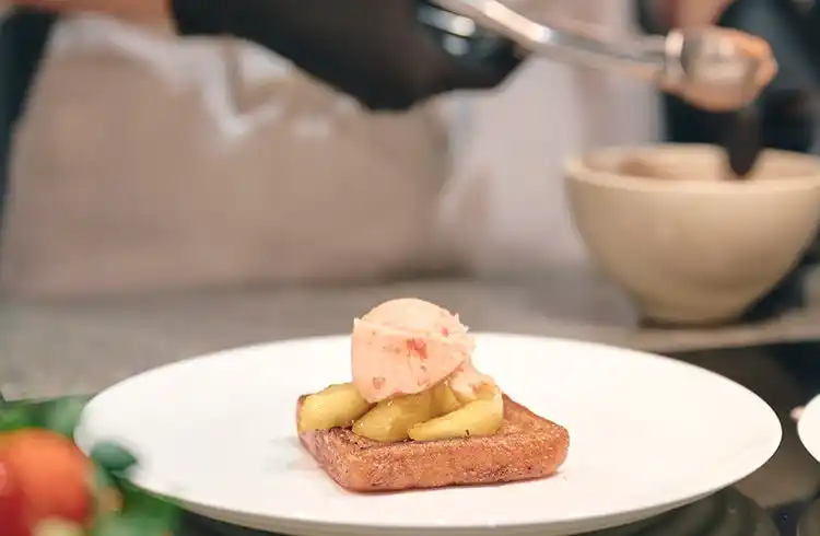 フレンチトースト アップルフランべ、ストロベリーソルベを添えて |
